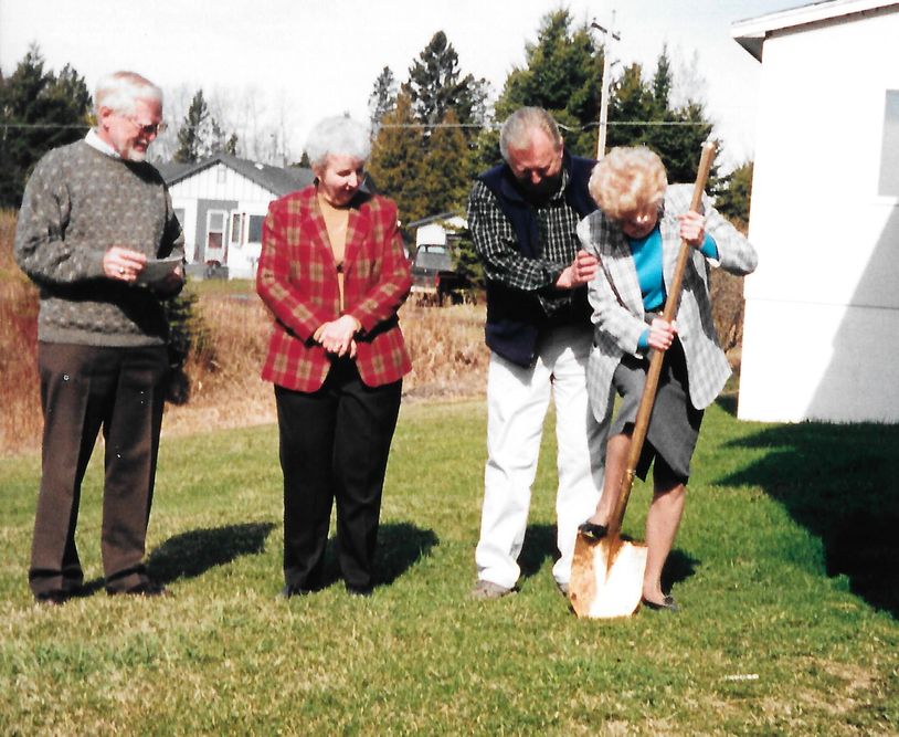 Photo: Church addition groundbreaking (l to r, Marv Holt, Sandy Holt, Steve Carlson, Audrey Carlson. Photo: Audrey Carlson
