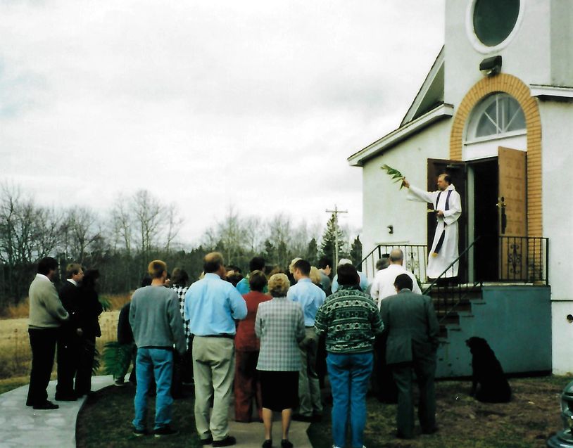 1987 Our Anniversary celebrating 50 years in this church and 60 years as a congregation was held Oct. 24 and 25, 1987. On Saturday, a fish cake supper was served with the theme, "Fishers of Men". On Sunday at 9 AM, the worship included a history of the church, presented by Audrey Carlson, and the Background of the Altar Painting, read by Christin Carlson. Special music was included also. At 2 PM that afternoon, a program was held with a Skit of Early Years and special music. Cake and coffee followed. A hand loomed banner dedicated to early founders was presented. The outside light to illuminate the cross, altar linens and the eternity light also were dedicated.